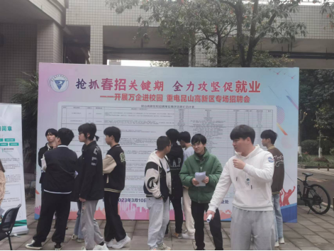 为给2023届毕业生和用人单位搭建更便捷的交流平台,更好的促进毕业生就业,2023年3月10日上午,重庆电子工程职业学院招生就业处与昆山高新区人社局联合举办了“万企进校园 重电昆山高新区专场招聘会”。