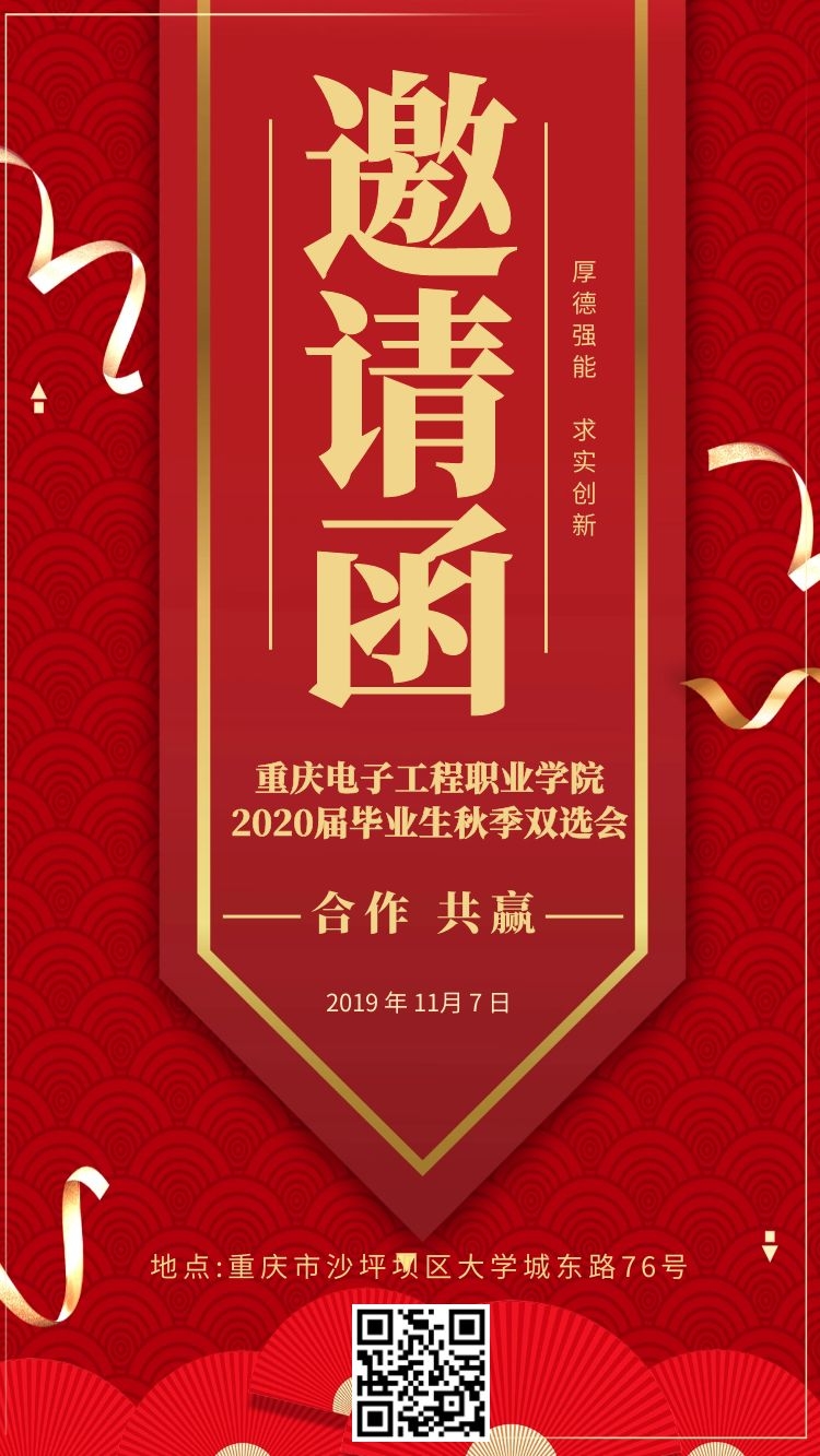 为进一步加强校企就业交流合作,促进毕业生就业,我校决定于2019年11月7日举办2020届毕业生秋季双选会,我们诚挚地邀请贵单位前来参加。现将有关事宜通知如下:
