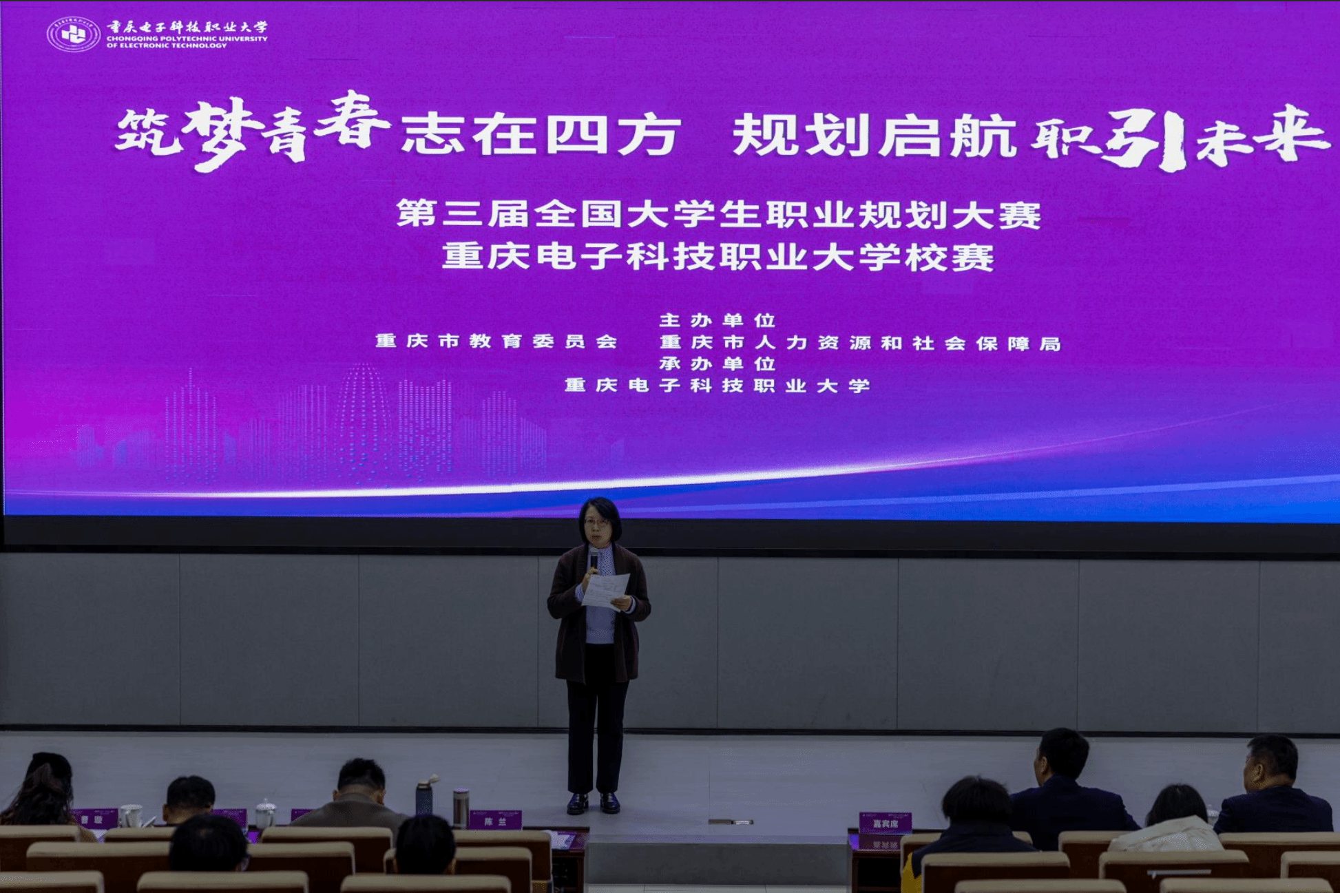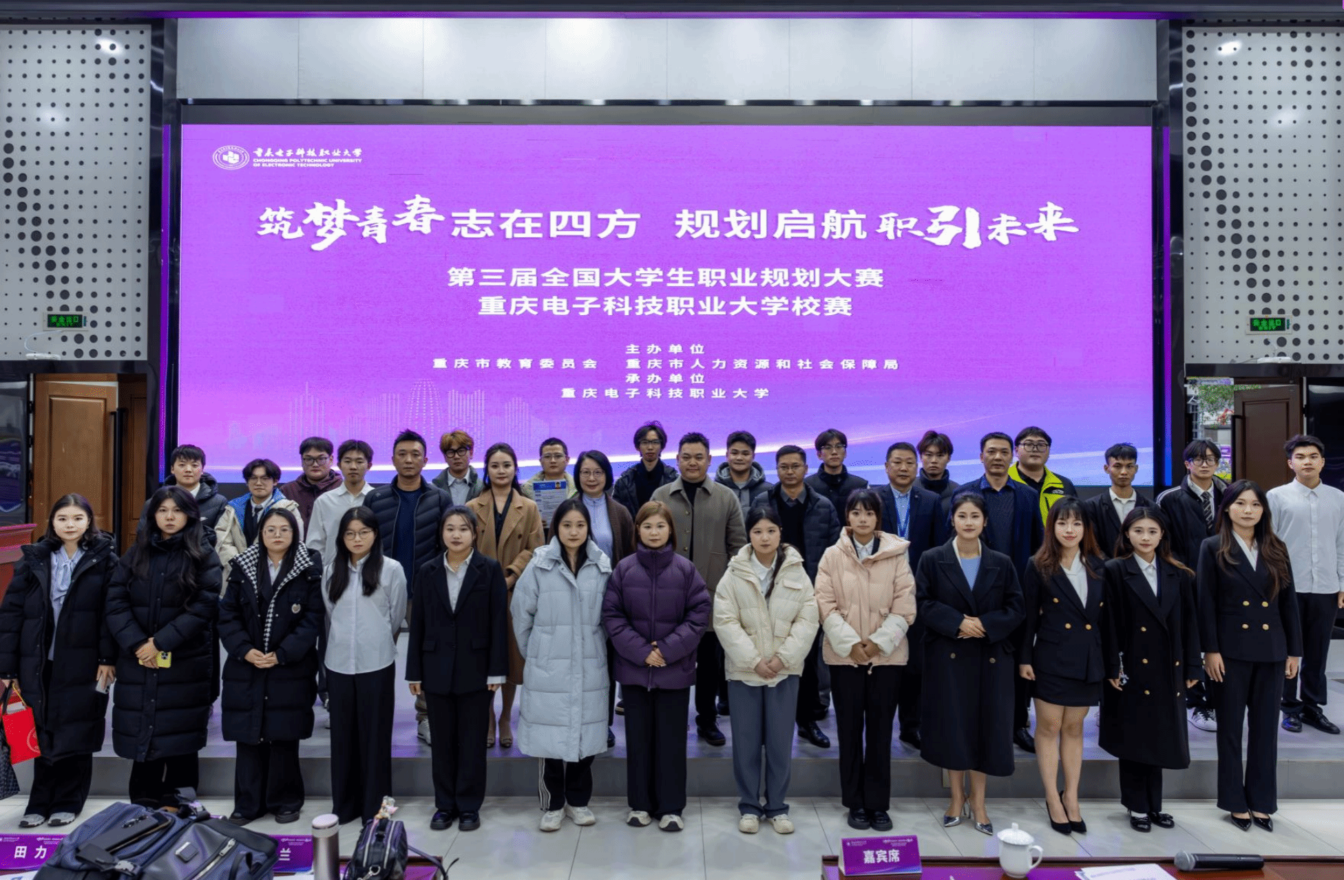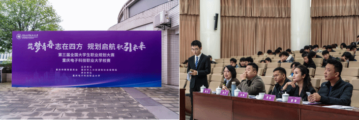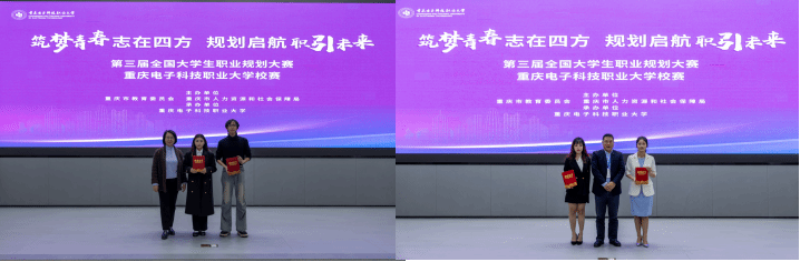 2025 年 12 月 4 日,由重庆市教育委员会、重庆市人力资源和社会保障局主办,重庆电子科技职业大学招生就业处承办的“筑梦青春志在四方 规划启航职引未来”第三届全国大学生职业规划大赛校级决赛在学校博远厅圆满收官。