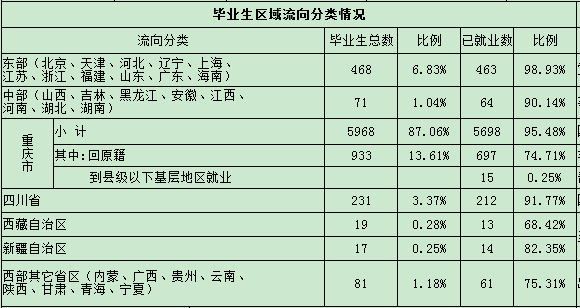 三、毕业生就业流向